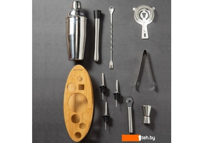 | Состав набора | гейзер, джиггер, ложка, нож для чистки овощей, мадлер, подставка, стрейнер, шейкер, щипцы для льда |