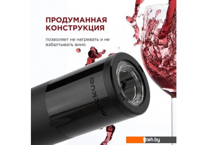 | Информация | Пейте благородные напитки правильно, превращая процесс из обыденной процедуры в ритуал, смакуя каждый глоток и наслаждаясь ароматом. Благодаря электроштопору MAKKUA вино теперь можно открыть одним нажатием кнопки. Он за 5 секунд выкрутит пробку, а вам останется лишь удалить её со спирали, нажав на кнопку очистки. Продуманная конструкция штопора позволяет не нагревать и не взбалтывать вино. В комплекте есть резак для снятия фольги с горлышка бутылки. Корпус выполнен из нержавеющей стали с матовым покрытием, на котором не остаются следы от пальцев. Светодиодная подсветка добавит яркости процессу откупоривания бутылки. Заряжать прибор легко и удобно с помощью кабеля micro-USB. |