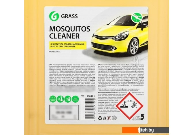 | Информация | Предназначено для быстрого и легкого удаления остатков насекомых со стекол, пластиковых и хромированных бамперов, капота, решеток радиатора. Обладает высокой очищающей способностью.Состав:вода, поверхностно-активные вещества, активные добавки, краситель. Меры предосторожности: в состав входит щелочь. Необходимо использовать перчатки. При попадании на кожу или слизистую оболочку промыть большим количеством воды. При необходимости обратиться к врачу. Хранить плотно закрытым.Способ применения:1. Концентрат разбавить с водой из расчета 1:4 (1:9) в зависимости от степени загрязнения. 2. Сбить с загрязненной поверхности водой под давлением верхний слой пыли, после чего нанести из распылителя моющий раствор. 3. Выдержать 2-3 минуты не допуская высыхания. 4. Тщательно смыть водой. |