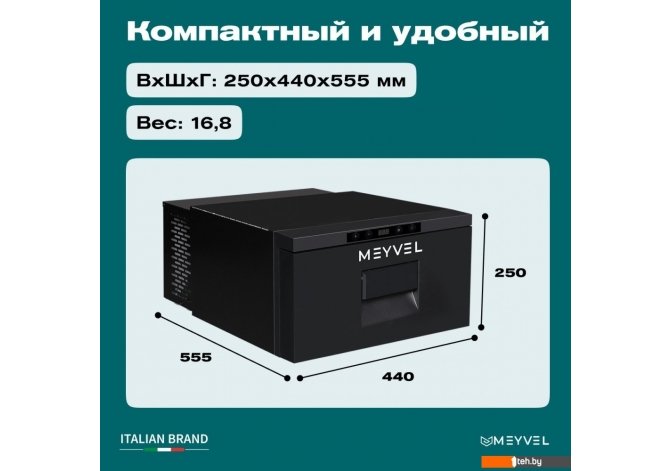 | Информация | Meyvel AF-CB20 — это современный компрессорный автомобильный холодильник объемом 13 л, который легко справляется как с охлаждением, так и с заморозкой продуктов. Благодаря рабочему диапазону от -20°C до +20°C модель уверенно поддерживает нужную температуру в любых поездках и путешествиях. Максимальная эффективность охлаждения Фирменный компрессор гарантиурет стабильную и высокую производительность — продукты охлаждаются быстро, даже при высокой температуре окружающей среды. Устройство поддерживает два режима работы: Турбо и Экономичный. Первый быстро достигает заданной температуры, второй — экономично расходует энергию. Безопасность для автомобиля Meyvel AF-CB20 оснащен трехступенчатой системой защиты аккумулятора автомобиля, которая предотвращает его разряд при длительном использовании устройства. А функция запоминания температуры избавляет от необходимости каждый раз вручную выставлять настройки после выключения. Удобство и продуманные детали Съемная проволочная перегородка упрощает организацию внутреннего пространства. Электронная панель управления с цифровым дисплеем для простой настройки. Защелка дверцы предотвращает самопроизвольное открытие во время движения. Управление через мобильное приложение — удобный способ следить за работой холодильника на расстоянии. Прочность Прочный металлический корпус, стойкий к ударам и вибрациям, гарантирует надежную работу даже на сложных трассах. Модель устойчиво функционирует под наклоном до 40°, что особенно важно при использовании в джипах, фургонах или на катерах. Тихая работа Уровень шума ниже 45 дБ — холодильник не помешает ни в дороге, ни в жилом помещении. Универсальное применение Работает от постоянного (DC) и переменного (AC) тока (адаптер приобретается отдельно), поэтому подходит для автомобиля, грузовика или кемпера. |