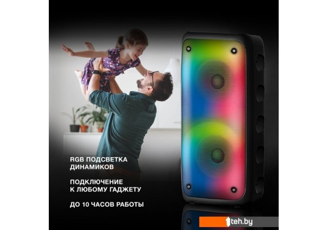 | Информация | Портативная аудиосистема Hyundai H-MC1230 в стильном черном корпусе с яркой подсветкой обладает максимальной мощностью 40 Вт. Для подключения к другим устройствам и внешним накопителям вы можете использовать AUX-вход, USB-порт и слот для MicroSD. Bluetooth позволяет слушать музыку и управлять настройками колонки со смартфона. Hyundai H-MC1230 дополнена функциями радио и караоке, входом для микрофона и разъемом microUSB. Режим TWS помогает легко синхронизировать работу системы с другими колонками и разговаривать по телефону на громкой связи. Встроенный аккумулятор на 2400 мА?ч выдерживает 10 ч без подзарядки, что позволяет брать колонку с собой на дачу или отдых на природе. |