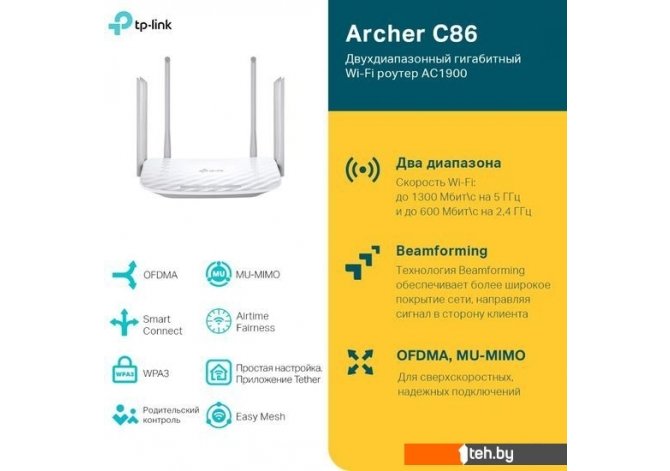 Фотографии, описание и технические характеристики модели сетевого маршрутизатора TP-Link Archer C86 взяты из открытых источников, официального сайта производителя или представительства TP-Link в Республике Беларусь.