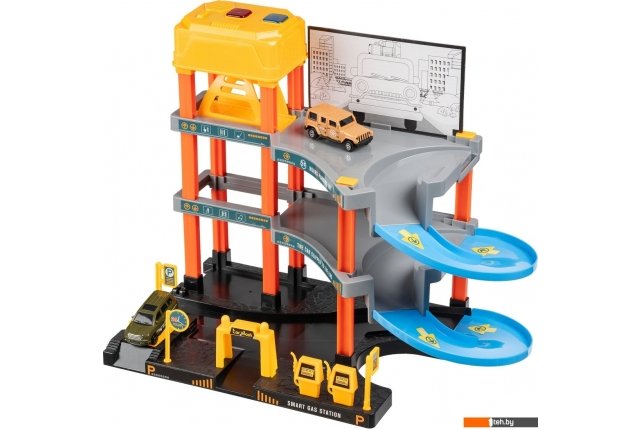 3-уровневый с дорогой и автомобилями P9488A-1 (желтый, 2 машинки)