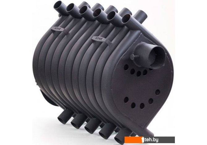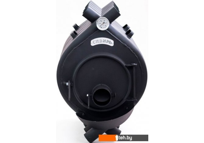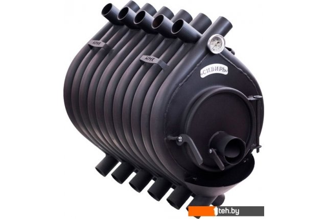 | Информация | Воздухогрейная печь "Сибирь БВ" - 180 - это инновационная запатентованная модель завода "НМК". Печь представляет собой цельнометаллическую конструкцию, состоящую из 11-ти соединенных между собой металлических труб круглого сечения, обеспечивающую естественную конвекцию. Благодаря этому происходит быстрое нагревание воздуха и его плавное распределение по всему объему помещения.Прототипом создания данной модели в производственной линейке завода "НМК" была аналогичная канадская отопительная печь. Конструкторы завода "НМК" взяли ее за основу, модернизировали, добавили ряд конструкционных внедрений и запустили в серию. Воздухогрейная печь "Сибирь БВ" - 180 предназначена для экономичного воздушного отопления жилых и производственных помещений, дач, гаражей, теплиц, мастерских и сушильных камер объемом от 120 до 180 м3. Номинальная мощность данной печи составляет 7 кВт. За счет использования сплошного ряда теплообменных труб в боковых стенках увеличена поверхность теплоотдачи и решена проблема интенсивного инфракрасного излучения при номинальной мощности эксплуатации печи. Холодный воздух, из отапливаемого помещения, за счет конвекции поступает в нижние отверстия теплообменных труб, а через верхние возвращается в помещение нагретым до температуры от 60 до 80 градусов.Таким образом, воздух равномерно нагревается и перемешивается по всему объему помещения. Печь имеет двухкамерную топку, в которой методом тлеющего горения в две стадии происходит сжигание топлива и дожиг печных газов. Печные газы, образовавшиеся от тления дров в нижней (первичной) камере поступают в верхнюю (вторичную) камеру, где дожигаются за счет подачи в нее, через специальные инжекторы подогретого воздуха из отапливаемого помещения.В режиме основного горения за счет тления топлива, одной полной закладки дров хватает на 8 – 10 часов непрерывной работы, в зависимости от плотности и влажности топлива. Перегородка, разделяющая первичную и вторичную камеры также способствует достижению оптимальной температуры верхних концов теплообменных труб. Загрузка топлива в печь производится через загрузочную дверцу, имеющую оптимальные размеры, что позволяет загружать в печь крупные поленья. Эксцентриковый замок на ручке дверцы обеспечивает ее надежное и плотное запирание. На загрузочной дверце расположен регулятор заслонки поддувала, с помощью которого можно регулировать интенсивность сжигания топлива. Режим дожигания печных газов, выделяющихся из топлива, устанавливается регулятором заслонки дымохода и подбирается опытным путем в зависимости от конструкции дымохода. Зольник предохраняет от возможного падения раскаленных частичек топлива на пол помещения. Данные печи являются мощными нагревателями воздуха и позволяют за короткое время достигать комфортной температуры внутри помещения. Данные печи независимого питания, функционируют на твердом топливе: дерево, древесные отходы, картон, брикеты. Являются экономичными по потреблению топлива, могут функционировать по принципу «тлеющего» горения. Имеют высокий КПД - 85%. Имеют широкую линейку модификаций, дающую способность отапливать помещения площадью от 30 до 720 м3. Все наружные поверхности печи окрашены жаростойкой эмалью, сохраняющей свои свойства при высокой температуре. |