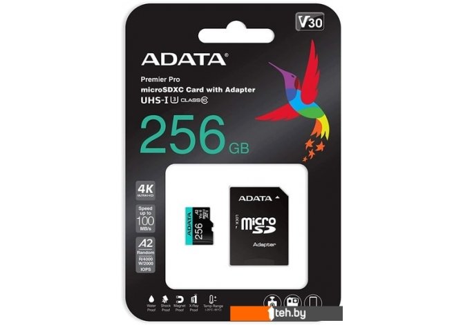 Фотографии, описание и технические характеристики модели карты памяти ADATA Premier Pro AUSDX256GUI3V30SA2-RA1 microSDXC 256GB (с адаптером) взяты из открытых источников, официального сайта производителя или представительства ADATA в Республике Беларусь.