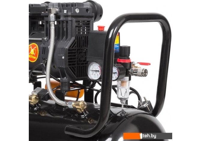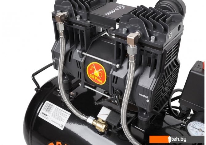 | Информация | Воздушный безмасляный двухцилиндровый компрессор. Для работы не требуется заливка масла: не доставляет неудобств сложным техническим обслуживанием, воздух на выходе не имеет масляных примесей. Низкий уровень шума и вибрации позволяет использовать в различных помещениях. Большой моторесурс привода. Комплектуется блоком подготовки воздуха (влагомаслоотделитель) с регулятором. Электромагнитный клапан разгрузки для облегчения повторного запуска в автоматическом режиме работы. Мотор снабжен термозащитой установленной в статоре. Защита от короткого замыкания. |