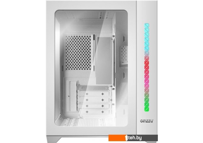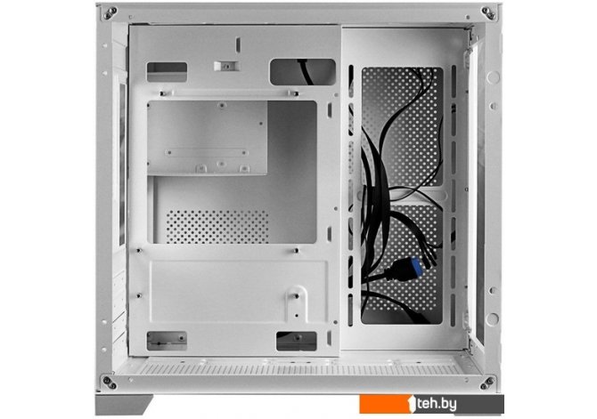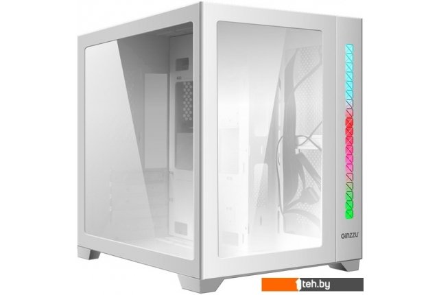 | Информация | ? Прочное шасси из стали белого цвета 0,6 мм. ? Поверхности корпуса выполнены из закаленного стекла. ? Уникальный дизайн в виде стеклянного куба. ? На передней панели RGB подсветка. ?? Оригинальная конструкция кабель менеджмента и расположения БП. |