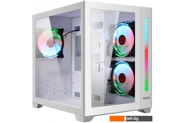 | Информация | Прочное шасси из стали белого цвета 0,6 мм. Поверхности корпуса выполнены из закаленного стекла. Уникальный дизайн в виде стеклянного куба. На передней панели RGB подсветка. Оригинальная конструкция кабель менеджмента и расположения БП В комплекте с корпусом поставляется контроллер управления RGB подсветкой Ginzzu CRC6 с дистанционным пультом и 3 RGB вентилятора 120 мм Ginzzu 12R6. Съемная корзина для жестких дисков. Сетчатый магнитный фильтр |