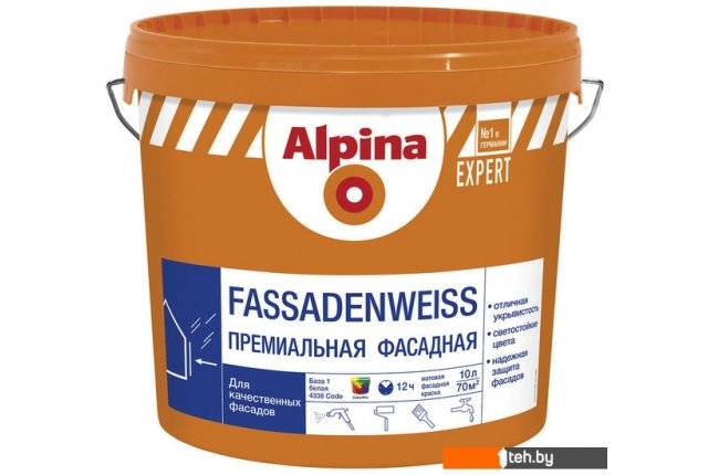 Фотографии, описание и технические характеристики модели Alpina Expert Fassadenweiss (База 1, 2.5 л) взяты из открытых источников, официального сайта производителя или представительства Alpina в Республике Беларусь.