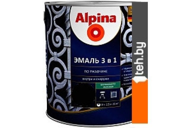 Фотографии, описание и технические характеристики модели Alpina По ржавчине 3 в 1. База 1. 2.5 л (шелковисто-матовый прозрачный) взяты из открытых источников, официального сайта производителя или представительства Alpina в Республике Беларусь.