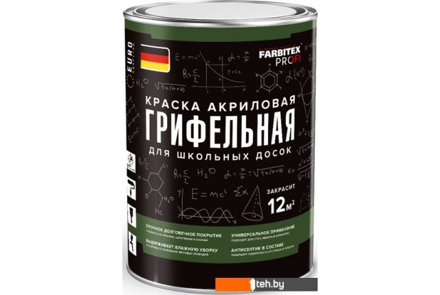 Фотографии, описание и технические характеристики модели Farbitex Profi Грифельная для школьных досок 1 л (черный) взяты из открытых источников, официального сайта производителя или представительства Farbitex в Республике Беларусь.