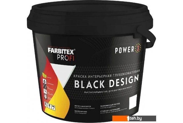 Фотографии, описание и технические характеристики модели Farbitex Profi Интерьерная глубокоматовая высокоукрывистая BlackDesign 5 л (черный) взяты из открытых источников, официального сайта производителя или представительства Farbitex в Республике Беларусь.