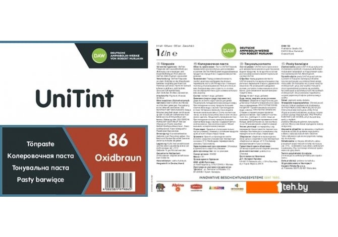 Фотографии, описание и технические характеристики модели Alpina UniTint 1 л (№86 oxidbraun) взяты из открытых источников, официального сайта производителя или представительства Alpina в Республике Беларусь.