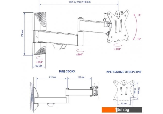 | Расстояние от стены (потолка) | 57 — 410 мм |