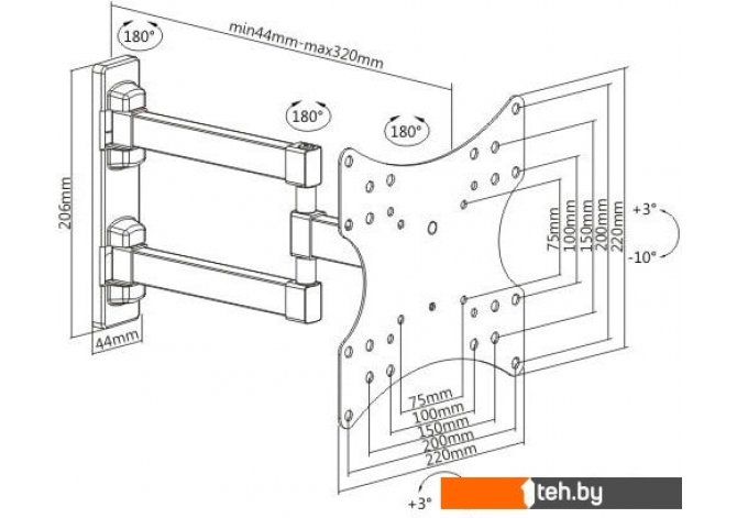 | Расстояние от стены (потолка) | 44 — 282 мм |