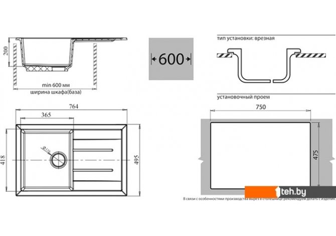 | Способ установки | врезная на столешницу |