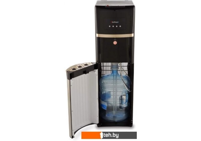 | Информация | Помимо кнопок подачи холодной и горячей воды, в кулере есть кнопка подачи охлаждённой воды (с температурой близкой к комнатной). Раздача воды осуществляется из единого сливного краника - это удобно и эстетично. Кнопка подачи горячей воды с функцией защиты от детей, что предотвращает случайный слив горячей воды ребёнком. Подсветка сливного краника (имеет отдельный тумблер вкл./откл. на тыльной стороне кулера). |