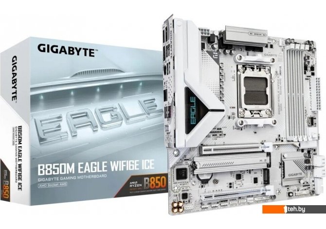 Фотографии, описание и технические характеристики модели материнской платы для компьютера Gigabyte B850M Eagle WiFi6E Ice (rev. 1.0) взяты из открытых источников, официального сайта производителя или представительства Gigabyte в Республике Беларусь.