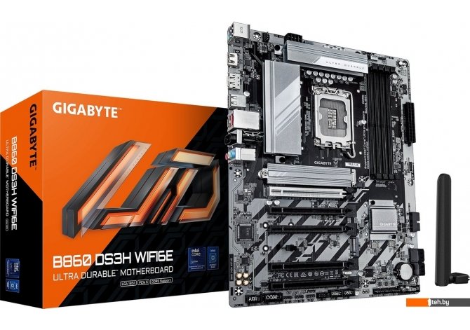 Фотографии, описание и технические характеристики модели материнской платы для компьютера Gigabyte B860 DS3H WiFi6E взяты из открытых источников, официального сайта производителя или представительства Gigabyte в Республике Беларусь.
