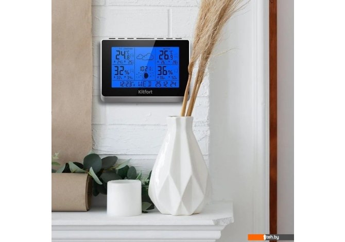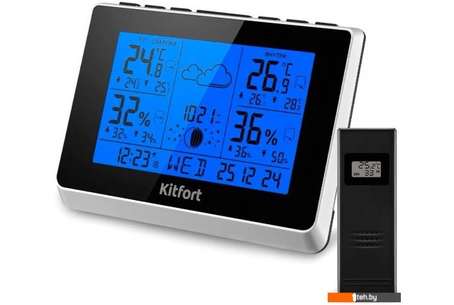 | Информация | - **Точность измерения** Метеостанция КТ-3729 — это прибор, который позволит следить за показаниями температуры и влажности как в помещении, так и на улице, атмосферным давлением, а также фазой луны. На дисплее отображаются часы, дата и день недели. - **Функция будильника** На дисплее метеостанции КТ-3729 отображаются часы, дата и день недели. Можно выбрать 12-часовой или 24-часовой формат отображения времени. Есть возможность установить будильник. Сигнал будильника может быть отложен на 5 минут. - **Контроль за показаниями не только дома** Модель оснащена 1 датчиком для получения показаний температуры на улице. У датчика есть дисплей, на котором также отображаются значения температуры и влажности. Датчик можно повесить на стену, для этого предусмотрено отверстие для настенного крепления. - **Работает от батареек** Метеостанция работает от 3 батареек типа ААА (не входят в комплект), благодаря чему ее можно расположить в любом удобном для вас месте. Прибор можно повесить на стену или поставить на стол. На задней части устройства расположено отверстие для настенного крепления. - **Самые важные значения в реальном времени** Метеостанция показывает максимальное и минимальное значения температуры и влажности в помещении и на улице за сутки. Также на дисплее отображается тенденция изменения температуры и влажности за 1 час: повышение, понижение, без изменений. |