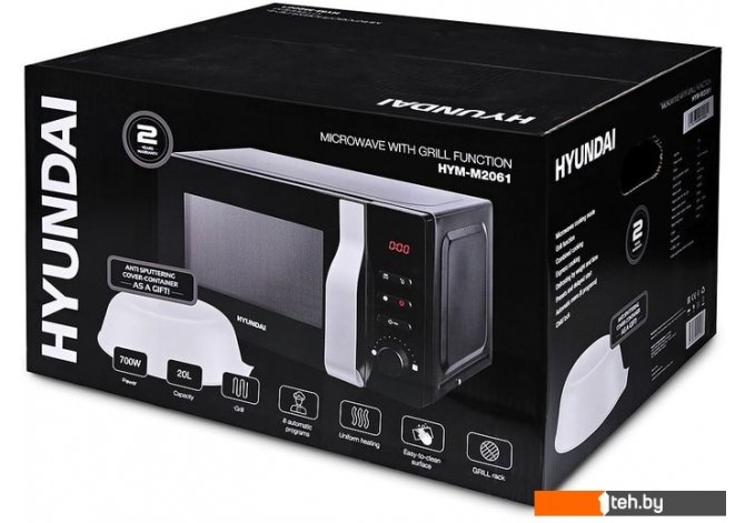 Фотографии, описание и технические характеристики модели микроволновой печи Hyundai HYM-M2061 взяты из открытых источников, официального сайта производителя или представительства Hyundai в Республике Беларусь.