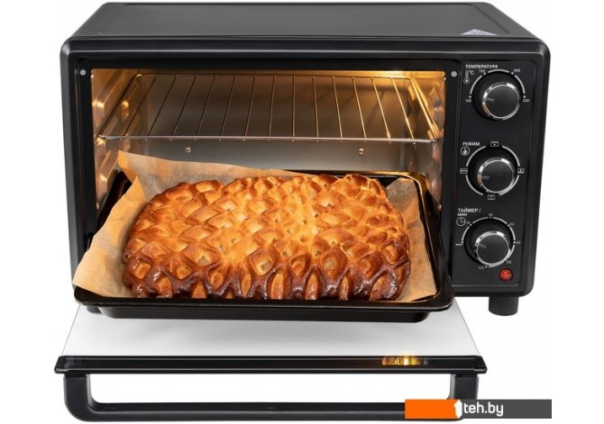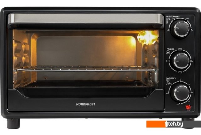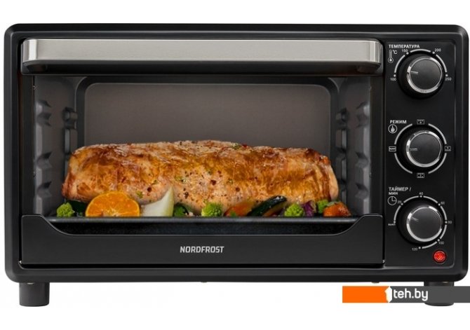 | Информация | ? Электрическая мини-печь NORDFROST RC 300 B объемом 30 литров с 3 режимами нагрева станет незаменимым прибором на вашей кухне. Корпус модели выполнен в стильном черном цвете. ? Настольная духовка предназначена для выпекания хлеба, пирогов, тортов, пирожков, а также для приготовления мясных, рыбных и овощных блюд. ? Высокая мощность модели 1500 Вт и функция конвекции обеспечат быстрое и равномерное приготовление продуктов в больших порциях. ? Настольная духовка имеет 3 режима работы. Мощные нагревательные элементы расположены в верхней и нижней частях прибора. ? С помощью режима «Гриль» печь позволяет готовить мясо большим куском, целую курицу или рыбу с хрустящей золотистой корочкой. ? Управление режимами – механическое, осуществляется с помощью поворотных регуляторов. Диапазон температуры нагрева печи от 100 до 250 °С. ? За счет встроенной подсветки удобно наблюдать за процессом приготовления через стеклянную прозрачную дверцу мини-печи, не открывая ее. ? Для контроля времени приготовления блюда предусмотрен встроенный таймер с автоматическим отключением. С помощью него можно запрограммировать точное время приготовления до 120 минут. По истечении времени громкий звуковой сигнал проинформирует пользователя о готовности блюда. ? Универсальный противень и решетку можно использовать для приготовления одновременно на разных уровнях духового шкафа. В комплекте идет ухват для противня и решетки, чтобы быстро и безопасно извлечь горячие блюда из духовки. Стационарные направляющие в мини-печи представляют собой выемки на внутренней поверхности модели, на которые как раз опирается противень или решетка. Внутреннее покрытие духовки выполнено из оцинкованной стали. ?? Высокие ножки из термоустойчивого пластика не оставляют царапин на столе, препятствуют скольжению по поверхности и способствуют уменьшению воздействия горячих температур на столешницу. |
