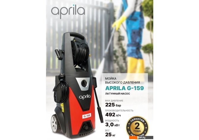 Фотографии, описание и технические характеристики модели аппарата высокого давления Aprila G-159 взяты из открытых источников, официального сайта производителя или представительства Aprila в Республике Беларусь.