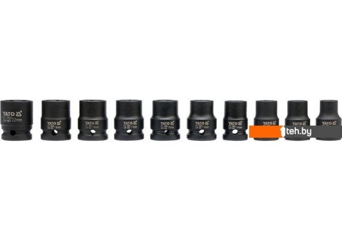 | Комплектация | Набор торцевых ударных головок 1/2" 10, 12, 13, 14, 15, 16, 17, 18, 19, 22 мм 10шт |