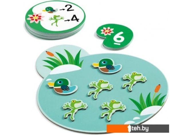 | Информация | С помощью этой игры ребенок в веселой игровой форме сможет научиться основам сложения чисел.В игру лучше играть ребенку с родителем.Игровое поле в виде пруда с камышами положите перед ребенком. Карточки с задачами и ответами положите возле игрового поля.Жетоны с животными разложите на столе.Ход игры:Ребенок вместе со взрослым смотрит карточку с задачей и пытается найти правильный ответ - сколько всего животных нужно разместить на игровом поле. Например: 2 стрекозы и 2 рыбки. Малыш должен взять указанных животных и пометить их на игровое поле, а затем сосчитать их общее количество и взять кувшинку с найденным числом.Взрослый наблюдает за действиями малыша и помогает найти правильный ответ.На обратной стороне карточек задача указан правильный ответ для того, чтобы малыш проверил и повторил решение. |