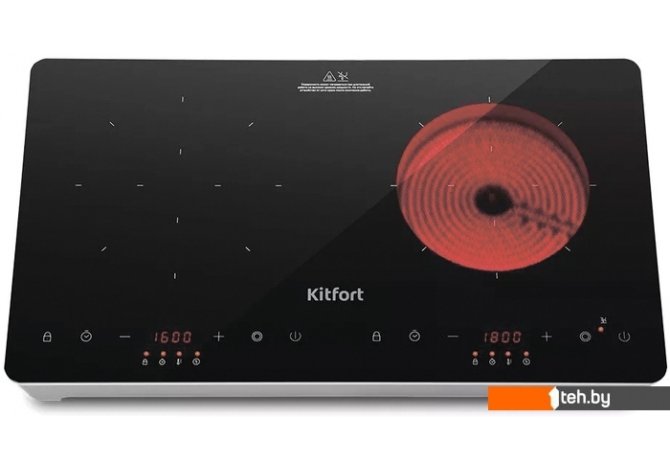 | Информация | Индукционно-инфракрасная плитка Kitfort KT-164 практична и экономична. Эта плита использует современные технологии, позволяющие готовить ваши любимые блюда вкусно, быстро и абсолютно безопасно. Индукционная плитка почти исключает вероятность получения ожогов - рабочая поверхность едва нагревается при готовке. У инфракрасной нагрев происходит постоянно даже на минимальных мощностях. Поверхность нагревается только от контакта с горячей посудой. С помощью сенсорной панели управления вы можете настроить нужный нагрев до 1800 Вт, установить до 18 ступеней мощности и установить таймер до 24 часов. Для безопасности в плите встроена функция блокировки кнопок, чтобы не сбить заданные вами настройки. Для инфракрасной плитки подходит практическая любая посуда, однако рекомендуется использовать посуду с плоским дном. Для индукционной плитки подходит посуда с дном из ферромагнитных материалов. Плитка суммарно выдерживает вес до 10 кг. |