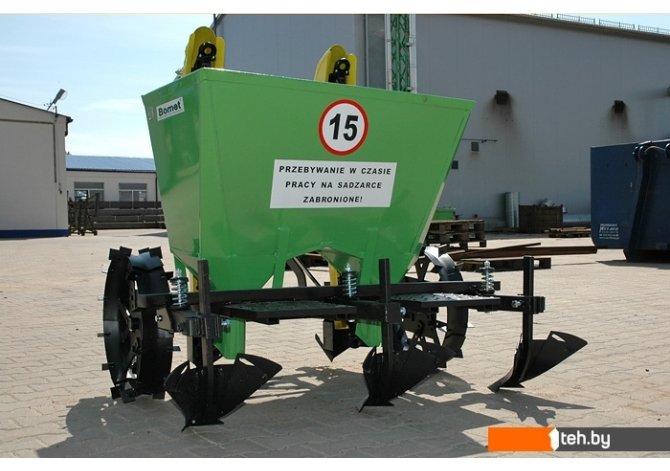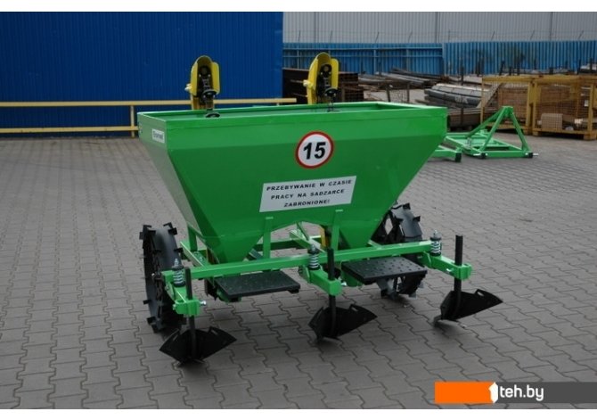 | Информация | Двухрядная навесная сажалка для картофеля присоединяется к трактору при помощи заднего навесного устроства (ЗНУ). Сажалка взаимодействует с тракторами оснащёнными ЗНУ второй категории. Она выполняет все операци в одном рабочем цикле, связанным с высаживанием картофелей т.е. вспахивает борозды, автоматически высаживает картофель и окучивает землю, формируя гряды. |
