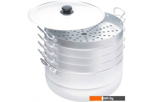 | Информация | Алюминиевый манты-казан с 4 сетками – удобная, практичная и долговечная посуда для приготовления блюд на пару. Конструкция мантоварки состоит из корпуса и комплекта сеток для размещения продуктов на разных уровнях. Отверстия в дне сеток позволяют распределить пар по всему объему мантоварки, что позволит приготовить еду равномерно и одновременно. Количество сеток можно регулировать, добавлять или уменьшать. Сетки можно приобрести дополнительно.Использовать мантоварку с сетками очень просто: вода заливается в базовую кастрюлю не менее 2/3, выложить продукты на сетки, закрыть крышкой и можно включать плиту. Алюминиевая посуда подходит для газовых и электрических плит, ее легко мыть и можно компактно хранить.В манты-казане удобно готовить: манты, пельмени, хинкали, вареники, тефтели, котлеты, рулеты, штрудели и другие объемные сочные кулинарные изделия из мяса, теста, овощей. |
