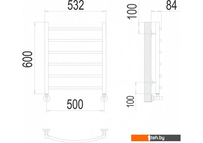 | Информация | ? Полотенцесушитель TERMINUS Классик П6 500x600 нп - водяной тип полотенцесушителя с нижним подключением. Форма лесенка, 6 перекладин, равноудаленная группировка. Высота 600 мм, ширина 532 мм, межосевое расстояние 500 мм. Теплоотдача 198 Вт, рабочее давление 3-15 Атмосфер, давление испытаний 20 Атмосфер. Комплектация: телескопические держатели к стене, кран Маевского, заглушка, паспорт изделия. |