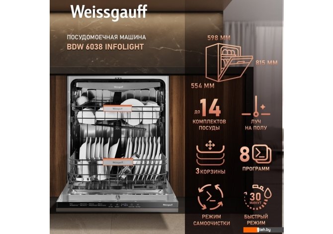 Фотографии, описание и технические характеристики модели посудомоечной машины Weissgauff BDW 6038 Infolight взяты из открытых источников, официального сайта производителя или представительства Weissgauff в Республике Беларусь.