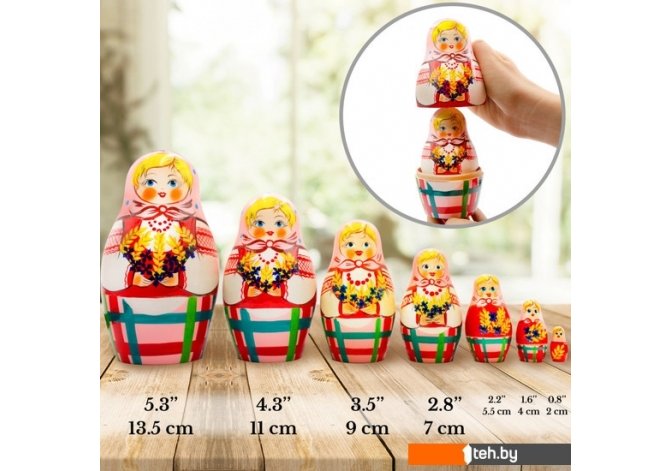 | Информация | ВЕЛИКОЛЕПНЫЙ ДИЗАЙН: Красивая белорусская девушка в традиционном народном костюме с полевыми цветами в руках ЭКОЛОГИЧЕСКИЕ МАТЕРИАЛЫ И ВЕРНОСТЬ ТРАДИЦИИ РОСПИСИ: натуральное дерево, краски и лак на водной основе УНИКАЛЬНЫЙ ПОДАРОК: оригинальный предмет декора для гостиной, спальни, детской, а также для офиса, салона ИДЕАЛЬНЫЕ РАЗМЕРЫ: высота самой большой матрешки 13.5 см, самой маленькой - 2 см |