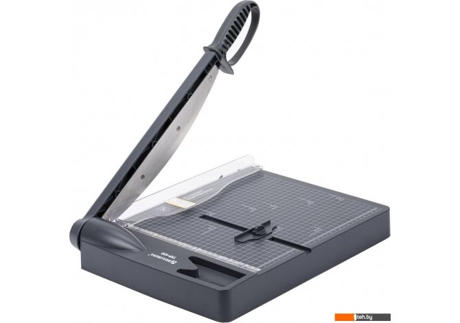 | Информация | Сабельный резак для бумаги подходит для домашнего и офисного применения. Позволяет одновременно разрезать до 30 бумажных листов формата А4. Оснащен безопасным лезвием, регулируемым пластиковым упором и прижимом для бумаг. Рукоятка анатомической формы препятствует соскальзыванию руки, а специальное крепление для рукояти зафиксирует её в закрытом положении и предотвратит непреднамеренное поднятие. В резак встроен возвратный механизм, который автоматически поднимает лезвие вверх, что значительно экономит силы при длительном использовании. В корпус встроен лоток-органайзер для скрепок или иных канцелярских принадлежностей. Удобная разметка рабочей поверхности позволяет точно наметить линию реза. Длина реза составляет 300 мм. Также имеются уголки для форматов А4, B5, А5, B6, B7. Резиновые ножки вкупе с прочным основанием предотвращают скольжение по рабочему столу во время эксплуатации. С сабельным резаком для бумаги выполнять повседневные задачи станет проще, чем когда-либо. Приобретите его и убедитесь в этом сами. |