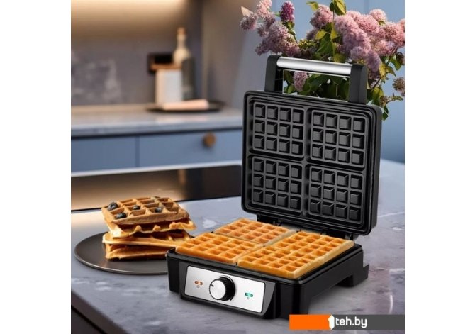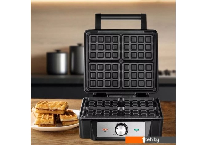 | Информация | ? Вафельница КТ-3607 позволяет приготовить 4 бельгийские вафли за раз, идеально подходит для больших семей. ? Ручка регулировки температуры является ручкой термостата, что позволяет плавно регулировать температуру от 50°С до 230°С. ? Панели вафельницы имеют антипригарное покрытие, что обеспечивает легкость в приготовлении и минимальное использование масла. ? Стильный универсальный дизайн вафельницы и удобная ручка делают ее идеальной для любой кухни. |