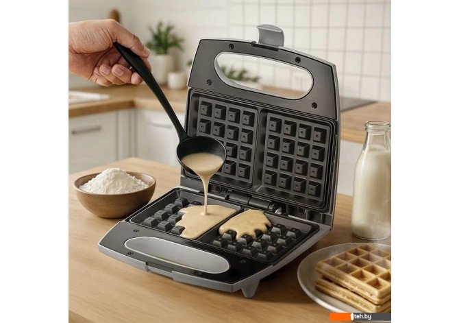 | Информация | -Вафельница Kitfort KT-4681 позволяет быстро и просто приготовить две бельгийские вафли за один раз. Благодаря высокой мощности в 750 Вт, процесс выпечки занимает всего несколько минут, а простое управление и понятная индикация делают использование прибора удобным даже для начинающих пользователей. -На корпусе расположены два индикатора:питания и нагрева. Индикатор питания загорается при включении устройства в сеть, а индикатор нагрева сигнализирует о процессе разогрева панелей и отключается при достижении нужной температуры, что обеспечивает дополнительный контроль над приготовлением. -Вафельница оснащена фиксатором для крышки, что удобно при хранении и транспортировке. Компактные размеры и стильный дизайн делают прибор отличным дополнением к любому кухонному интерьеру, а компактность позволяет легко найти для него место даже на небольшой кухне. -Антипригарное покрытие панелей предотвращает прилипание теста и облегчает чистку, позволяя готовить вафли с минимальным количеством масла. В комплекте идет инструкция с популярными рецептами, что поможет разнообразить завтраки и порадовать близких вкусной домашней выпечкой. |