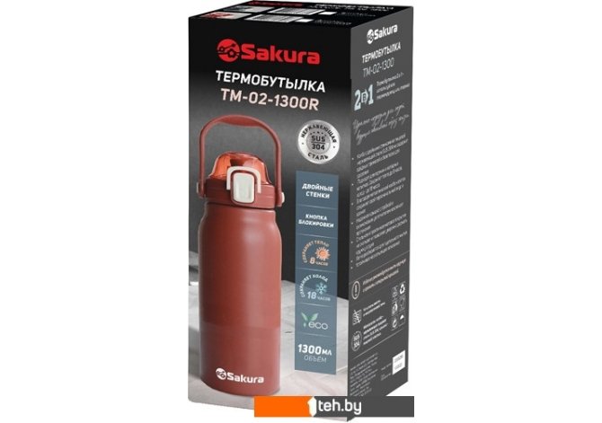 | Информация | ? Многофункциональный термос Sakura TM-02-1300R 1.3л с трубочкой для питья. ? Идеально подходит для использования как термокружка или термос. ? Оборудован двойными стенками и не нагревающимся корпусом. |
