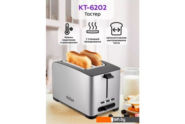 Фотографии, описание и технические характеристики модели тостера Kitfort KT-6202 взяты из открытых источников, официального сайта производителя или представительства Kitfort в Республике Беларусь.