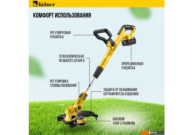 Фотографии, описание и технические характеристики модели триммера Kolner KTG 18-30T1 (с 1-им АКБ) взяты из открытых источников, официального сайта производителя или представительства Kolner в Республике Беларусь.
