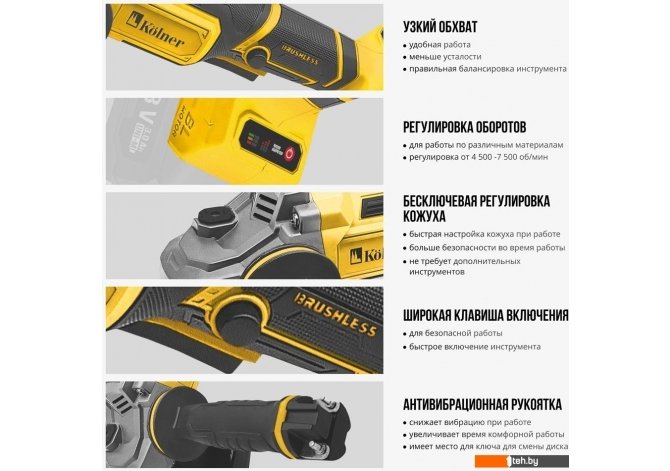 Фотографии, описание и технические характеристики модели болгарки Kolner KAG 18-125BL (без АКБ) взяты из открытых источников, официального сайта производителя или представительства Kolner в Республике Беларусь.