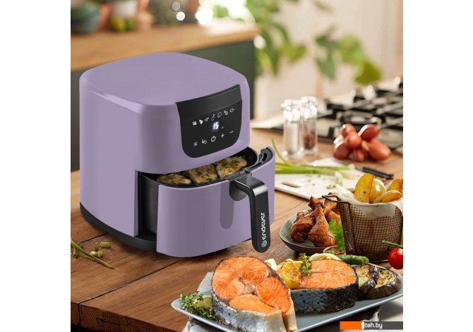 | Информация | - Аэрогриль Endever Skyline AF-127 привлекает внимание не только своим современным дизайном, но и возможностью готовить большинство блюд без масла. Благодаря циркулирующему горячему воздуху, ваши продукты равномерно обжариваются, оставаясь нежными с хрустящей корочкой. - Устройство оснащено сенсорным управлением и предлагает 7 автоматических программ, что позволяет легко готовить картофель фри, пиццу, куриные крылышки, ножки, стейки, креветки и рыбу. При желании, вы можете вручную настроить время и температуру, что делает использование аэрогриля еще более удобным. - С мощностью 1800 Вт и контейнером объемом 4,5 литра с антипригарным покрытием, вы сможете быстро и легко приготовить необходимое количество пищи. Продукты размещаются на специальной съемной решетке, также с антипригарным покрытием. - Во время готовки лишний жир и жидкости собираются на дне чаши, что обеспечивает максимальную полезность блюд. - Модель AF-127 включает защиту от перегрева, автоматическое отключение и индикатор работы. - Вы также можете использовать аэрогриль для подогрева блюд, установив температуру на 150 градусов. - В комплекте с аэрогрилем идет книга рецептов, где вы найдете множество идей для вкусных блюд для себя и своих близких. |