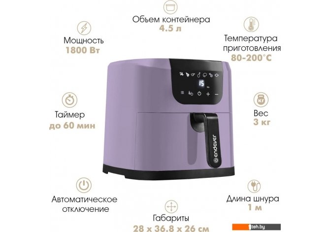 Фотографии, описание и технические характеристики модели Endever AF-127 взяты из открытых источников, официального сайта производителя или представительства Endever в Республике Беларусь.