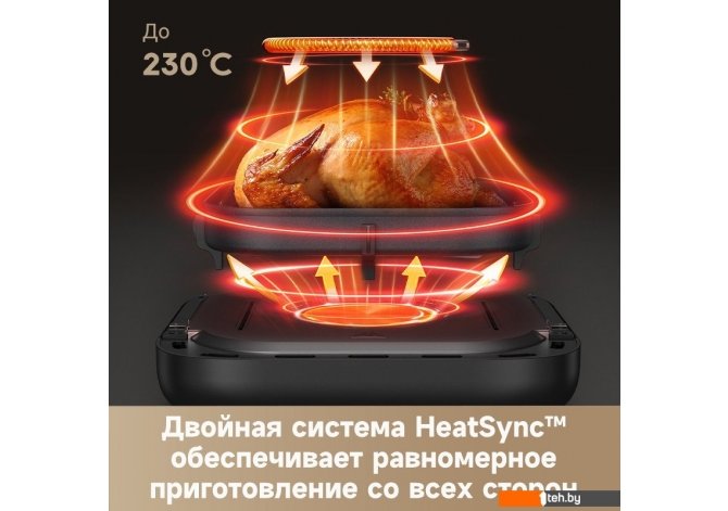 | Информация | - Двойная система HeatSync™ обеспечивает эффективное приготовление благодаря циркуляции горячего воздуха при температуре до 360° C. - Металлическая внутренняя поверхность гарантирует долговечность и легкость в уходе. - Объем 6 л позволяет готовить большие порции для всей семьи. - Видимое окошко дает возможность следить за процессом приготовления без открытия крышки. - 11 предустановленных режимов приготовления упрощают выбор нужного варианта. - LED экран делает управление интуитивно понятным и удобным. - Мощность 1800W и диапазон нагрева от 50 до 230°C обеспечивают быстрое и равномерное приготовление блюд. - Не упустите возможность сделать готовку более простой и приятной! |