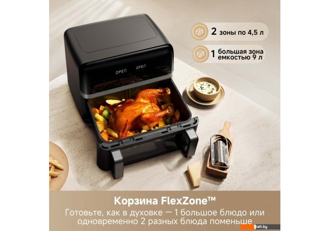 | Информация | - Многофункциональная двухзонная система позволяет легко переключаться на одно большее пространство для готовки. - Две независимые системы нагрева обеспечивают оптимальные условия для приготовления различных блюд. - Металлическая поверхность исключает неприятные запахи пластика во время нагрева, что делает процесс более комфортным. - Вместительная емкость в 9 литров позволяет готовить большие порции. - Технология циркуляции горячего воздуха Poly-Air на 360° гарантирует равномерное прогревание и хрустящую корочку. - Рифленая сковорода-гриль с расширенным каналом для распределения воздуха и четырехзонной системой тепла обеспечивает идеальные результаты. - Прозрачное окно позволяет легко контролировать процесс приготовления без необходимости открывать устройство. - 7 универсальных предустановленных программ делают готовку простой и удобной. - Не упустите возможность насладиться вкусными и полезными блюдами! |