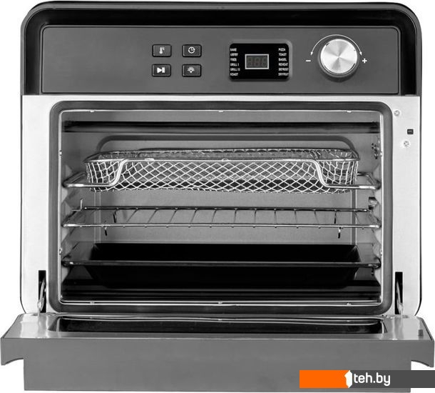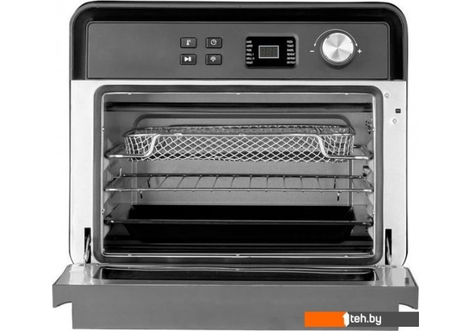 | Информация | Аэрофритюрница большого объёма (22 л) Множество функций, широкий выбор аксессуаров 12 программ: жарка, запекание, гриль, сухофрукты и др. PowerConvection — идеальный равномерный поток горячего воздуха Rapid HeatControl – готов к немедленному запуску без нагрева Элегантный «черный дизайн» с большим смотровым окном 3 уровня установки решетки и противня + вращающийся вертел и корзина для жарки Съемный поддон для крошек и капель Таймер от 1 до 120 минут / Сухофрукты 240 минут (с шагом 1 минута) Установка температуры от 40 °C до 230 °C (с шагом 5 °C) Подсветка камеры 6 нагревательных элементов из нержавеющей стали (4 вверху, 2 внизу) |