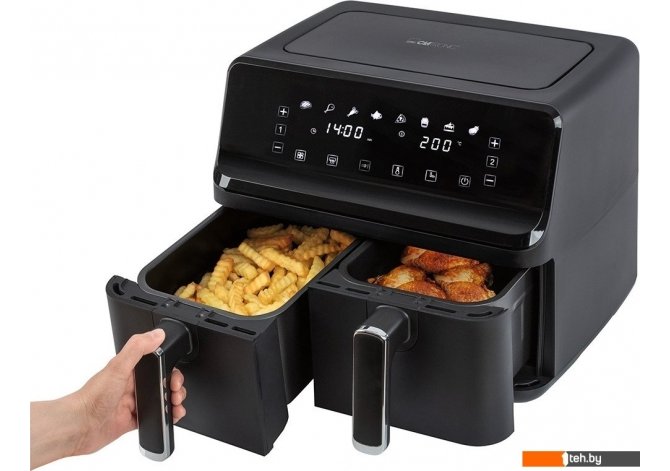 | Информация | - Объём 8 литров позволяет готовить большие порции. - Две отдельные емкости для жарки обеспечивают возможность как одиночной, так и комбинированной эксплуатации. - Раздельное управление с помощью двух сенсорных панелей гарантирует удобство в использовании. - Благодаря раздельным контейнерам, вкусы не смешиваются, что позволяет одновременно готовить два разных блюда. - В арсенале 8 автоматических программ для разнообразного приготовления. - Функция размораживания и поддержания тепла делает процесс ещё более удобным. - Индивидуальная настройка времени и температуры позволяет адаптировать процесс под ваши предпочтения. - Система «Точно в срок» обеспечивает одновременное приготовление блюд с разным временем готовки. - Низкий уровень образования дыма и запаха делает готовку более комфортной. - Экономия времени и энергии при приготовлении — это удобно и эффективно. - Контейнеры с антипригарным покрытием упрощают процесс очистки. - Два отдельно регулируемых термостата (80–200 °C) позволяют точно контролировать температуру. - Автоматическое отключение и защита от перегревания обеспечивают безопасность в использовании. |