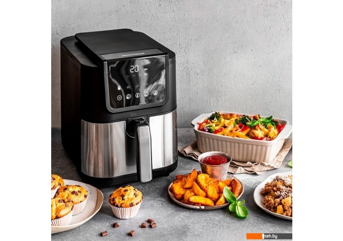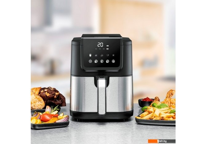 | Информация | - Компактная аэрофритюрница с вставкой из нержавеющей стали - Инновационная технология конвекции обеспечивает равномерное распределение тепла и тихую работу на уровне 45 дБ(А) - Светодиодный дисплей и сенсорная панель управления для удобства использования - 5 программ, включая возможность создания собственной программы с выбором температуры и времени - Таймер на 60 минут для удобства приготовления - 4 уровня температуры (80/160/180/200 °C) для разнообразных рецептов - Съемная корзина на 5 л, способная вместить до 800 г картофеля фри, с съемной решеткой - Двухслойное антипригарное покрытие облегчает очистку - Теплоизолированный корпус и защита от перегрева для безопасного использования - Нескользящие ножки для устойчивости на поверхности -(в крайнем случае) |