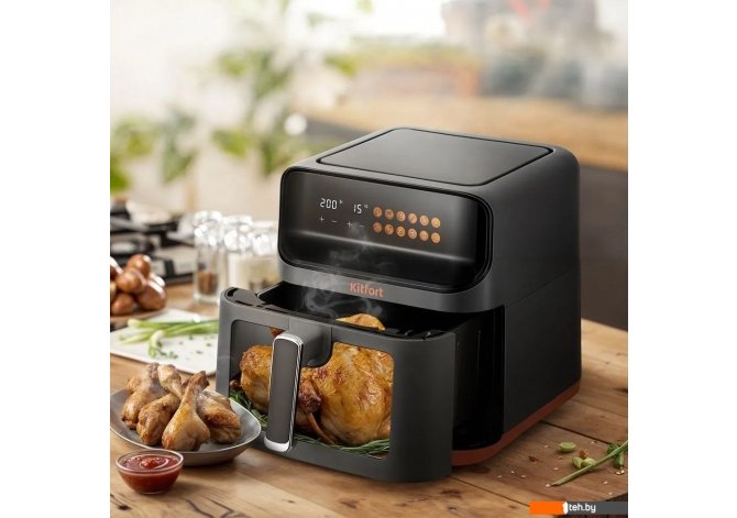 | Информация | - Современный аэрогриль КТ-8107 позволяет готовить множество блюд без масла, сохраняя их сочность и обеспечивая хрустящую корочку. - Устройство оснащено 9 автоматическими программами и ручным режимом, что делает процесс приготовления простым и удобным. Готовые шаблоны настроек помогут вам без лишних усилий достичь идеального результата. - Продукты готовятся на специальной решётке, которая размещена в поддоне с антипригарным покрытием. После завершения приготовления аэрогриль автоматически отключается, а решётка и поддон легко вынимаются и моются. - Благодаря системе циркуляции горячего воздуха, блюда равномерно обжариваются со всех сторон, оставаясь нежными внутри и хорошо запечёнными снаружи. При этом продукты практически не пригорают. - Не упустите возможность насладиться вкусной и здоровой пищей! |